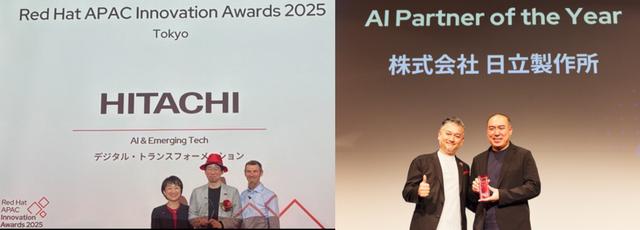 株式会社日立製作所(以下、日立)は、Red Hat, Inc.(以下、Red Hat)が主催する「Red Hat APAC Innovation Awards 2025」において、AI & Emerging Techおよびデジタル・トランスフォーメーションの2つの部門*1でAIおよびDXの取り組みが評価され、受賞企業に選出されました。また、日本法人であるレッドハット株式会社が主催する「Red Hat Japan Partner Awards 2025」において、AI Partner of the Yearを2年連続で受賞しました。